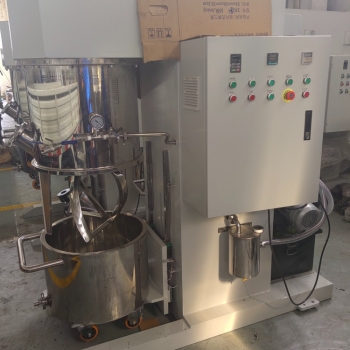 現(xiàn)階段常用的行星攪拌機(jī)通常有兩個(gè)低速檔大行星攪拌槳(通常為多斜漿葉式,大麻花式,框式),一個(gè)或2個(gè)快速大行星攪拌槳(分散化盤(pán))和刮壁槳構(gòu)成。